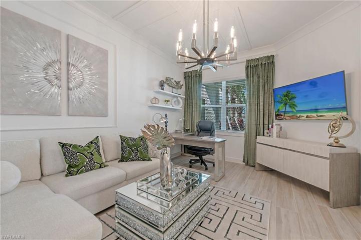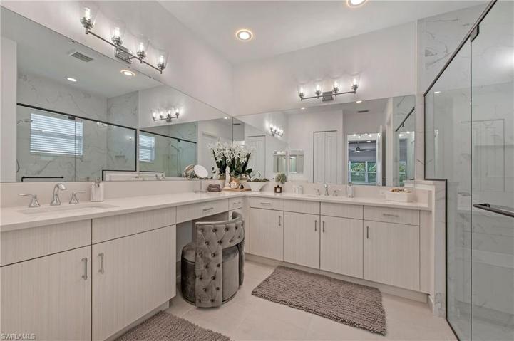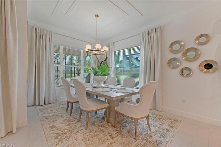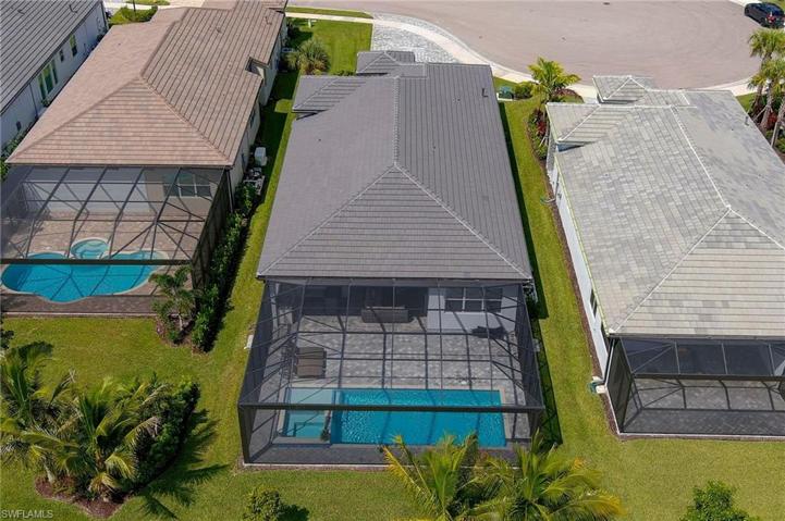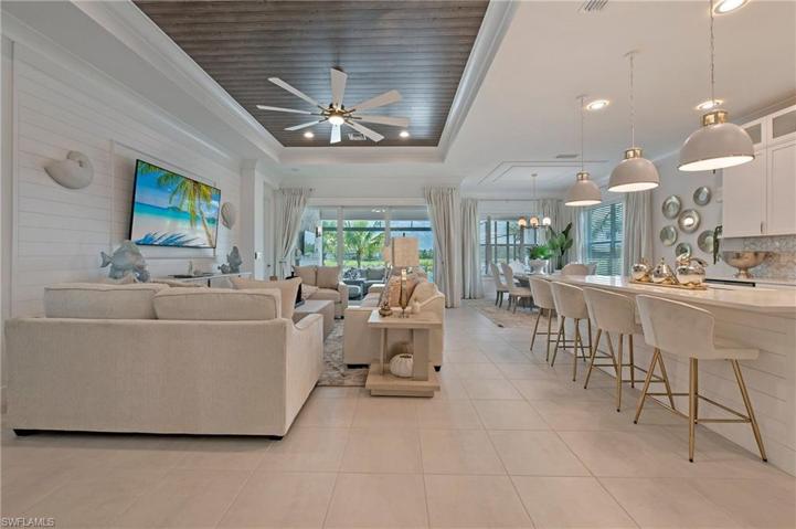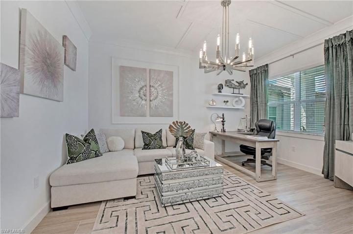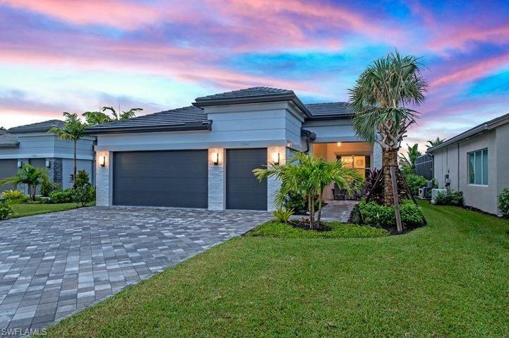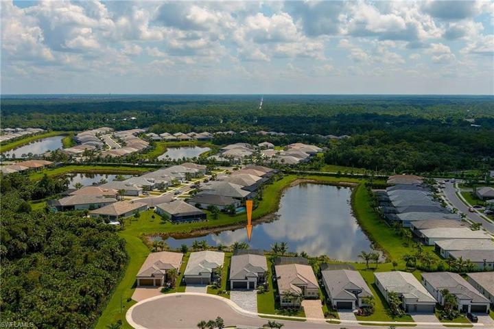 One of a kind, truly luxurious WATERFRONT pool and spa home. Supreme spot on the lake with stunning sunrises and sunsets. Most popular Nautilus floorplan features 3 bedrooms plus a den, 2 1/2 bathrooms, 2 car plus a golf cart garage. Brand new home with updates galore: built in mirrors, tile floors in all rooms, stunning light fixtures, 3 mode (day, night and both) recess lights throughout the house, crown molding, shiplap walls & ceilings, trim around windows and doors, glass top cabinets in the kitchen, cabinets in the laundry room, backsplash in kitchen and laundry room, curtains in all rooms, impact windows & doors, Panoramic lanai screen, pool fountains and much more. Spacious living room with built in bar. Gourmet kitchen with large island, soft-close cabinets, top layer glassed cabinets, quartz countertops, designer backsplash, stainless steel appliances, gas stove & chimney hood. Master suite features coffered ceiling, built in mirrors, spacious his & her closets and a master bath with dual sinks & loads of cabinets. Luxury outdoor living with gorgeous pool and spa, fireplace and built in kitchen. Valencia Trails features 160 acres of pristine preserve and over three miles of walking trails, perfect for outdoor lovers. 55+ very active community with lots of exciting events, conveniently located just minutes away from the best shopping and dining and white sand beaches.