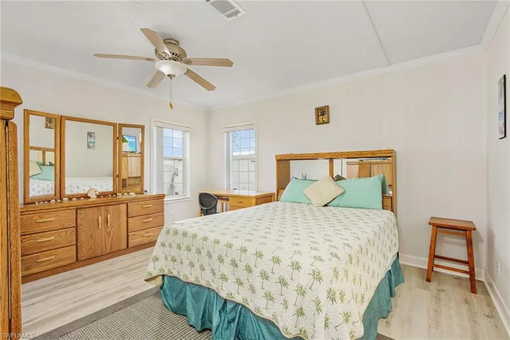Desirable full lot in Flamingo Bay with newer, elevated mobile. This mobile is like new. Large open porch looking out over the canal. Spacious master suite, extra building for storage, plenty of room for a pool, LVP flooring, and laundry in residence. Stainless steel appliances, crown molding, and ample storage. New air conditioning, roof, boat lift motors, and insulation. The composite dock and boat lift give you quick, direct access to all this area has to offer. The beaches of Sanibel and Captiva, and all the waterfront restaurants. Only minutes to great fishing. Flamingo Bay offers a voluntary homeowners association which gives you access to the pool and clubhouse for less than $200 a year.