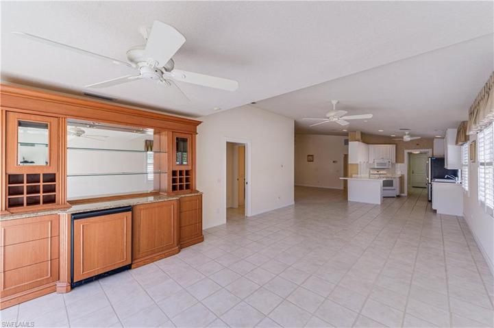 $20K price adjustment!!! LOWEST unit in the community! Superb Move-In ready “Extended Capri Model” 2BR/2BA plus den Villa with an attached 2 car garage. New Roof installed in 2018! Hurricane accordion shutters, tile flooring throughout main living areas and carpets in bedrooms, vaulted ceilings, white Bermuda shutters throughout, central vacuum, white kitchen cabinets, custom built-in bar and shelving unit. Island Walk is a 24 hour guard gated community with great amenities such as a resort-style swimming pool, lap pool, state-of-the-art fitness center, beauty salon, library, eight HAR-TRU tennis courts, four bocce courts and a putting green. In addition the community also has its own Post Office, Bank, Car Wash & Gas Station. Also, there are an abundance of scenic lakes throughout the community connected with walking and biking trails and pedestrian bridges leading to the charming Club House. All amenities, landscape care, irrigation, cable and high speed internet are included with HOA fees.