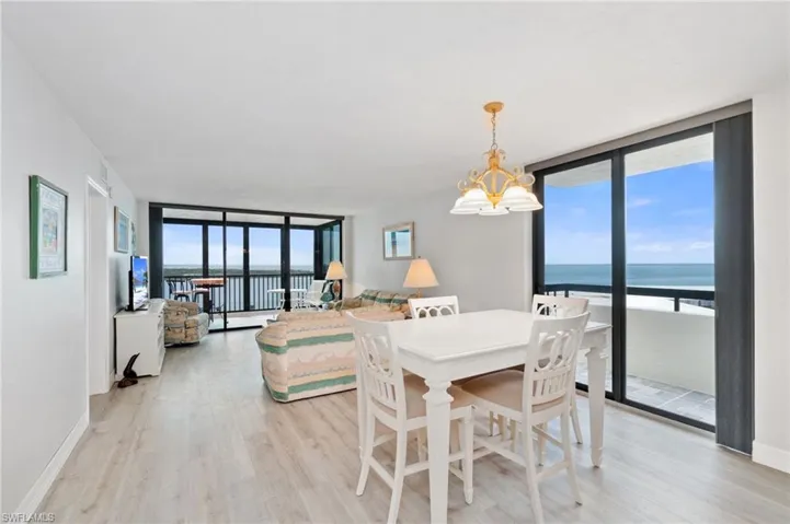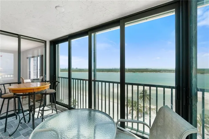 Beautiful 8th-floor beachfront END-UNIT with spectacular Gulf, Inlet & Bay views on the peaceful South End of Estero Island! This 1082 sq ft coastal retreat is finely appointed with 2 beds/2 baths, an inviting open floor plan, hurricane impact windows, new HVAC (Dec 2021), and tile and laminate flooring throughout. Enjoy some of the best views on the island- from breathtaking sunsets over the Gulf of Mexico on your spacious lanai to serene sunrises over the bay. The screened lanai offers a 270+ degree view and NEW hurricane impact glass sliders, providing the flexibility to be an enclosed sunroom or an open-air retreat when you want to soak in the soothing sounds of the surf. The kitchen is designed for both beauty and functionality, showcasing light custom cabinetry, granite countertops, stainless steel appliances, tray ceiling with accent lighting, and extra counter space and cabinets for storage. Retreat to the primary bedroom, where you’ll find private access to the lanai, stunning Gulf views, a walk-in closet, and a generous bathroom. This unit includes a parking space and an extra storage room on the same floor as the unit for your convenience. Islands End offers resort-style amenities, including two community pools, a spa, BBQ grills, tennis/pickleball courts, kayak storage, a fishing pier, and a community room. Since Hurricane Ian, Islands End has undergone several million dollars worth of repairs and improvements. SIRS compliance for the building was completed November 2024. The reserve study has been completed and approved. Islands End is perfectly situated close to Big Carlos Pass providing easy access to Lovers Key and Bonita beach. Experience the perfect blend of relaxation and recreation in this exceptional beachfront retreat!