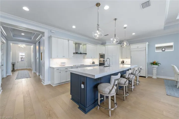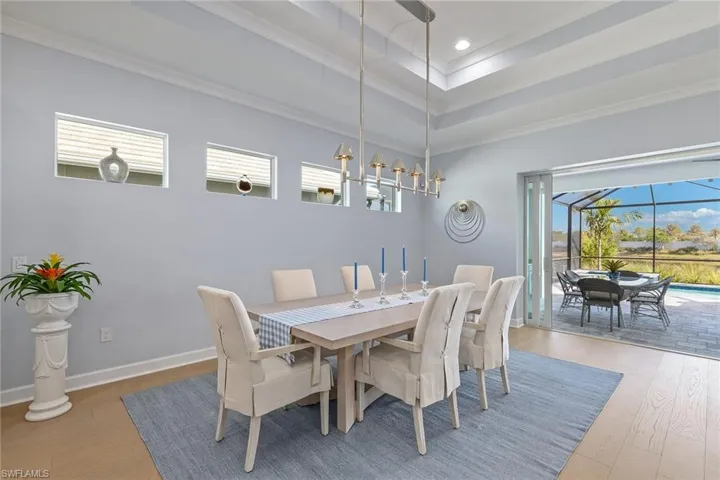 Presenting the new Acacia floor plan, furnished and turnkey! An exquisite waterfront residence blending comfort, style and privacy in the sought-after Isles of Collier Preserve. This luxurious home features an open-concept layout, ideal for modern living and entertaining. The gourmet kitchen is outfitted with top-of-the-line JennAir appliances, custom cabinetry and a large center island, creating a seamless flow into the spacious great room. The great room boasts a dramatic TV wall and ample space for relaxation or hosting guests. The home offers three bedrooms and 3.5 baths, with the primary suite providing breathtaking water views, and a flexible den that can easily serve as a home office, media or music room. Tastefully upgraded throughout, this home features over $300,000 of builder options. Engineered wood flooring, smart home lighting, LED landscape lighting, crown molding and more, all finished with luxurious new furnishings adding an extra layer of sophistication to the stunning design. Go outside into an outdoor oasis, where the expansive covered lanai features a fully equipped outdoor kitchen, ideal for alfresco dining and entertaining. The large pool deck hosts a sparkling saltwater pool and spa, offering an ideal space for relaxation. The screened enclosure ensures panoramic water views, making the outdoor living space as captivating as the interior. As a resident of the Isles of Collier Preserve, you’ll enjoy a wealth of exclusive, resort-style amenities, including a staffed gated entrance, resort-style pools with a separate lap pool, a fitness center and Overlook Bar & Grill. The community also offers six tennis courts, 14 pickleball courts and four bocce courts, along with a dock featuring kayaks for residents. Nature lovers will appreciate the community’s eight miles of biking and recreational trails through a preserved natural landscape, and pet owners will enjoy the convenience of a dedicated dog park. Additionally, the Naples Botanical Garden is less than a mile away, providing a serene escape with its stunning gardens and lush surroundings. Ideally just four miles from vibrant dining and shopping of 5th Avenue South in Old Naples, and only 15 minutes from the pristine beaches of Naples and Marco Island, the Isles offers the ideal blend of peaceful living and convenient access to the best of Southwest Florida. This meticulously maintained, newly built home offers unparalleled luxury living in one of Naples desirable communities. Don’t miss your chance to experience the best of Florida living and schedule your private showing today.