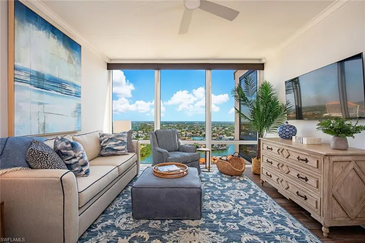 Introducing a masterpiece in the prestigious Le Parc building, perched on the Gulf of America. This two-bedroom, 2.5-bath sanctuary offers a front-row seat to breathtaking sunsets that stretch from the gulf to the bay, casting a golden glow across the sky and filling the home with radiance and tranquility. Step inside to discover impeccable finishes, soaring natural light and an atmosphere of pure sophistication. Beyond its beauty, Le Parc delivers unrivaled luxury, top-tier security and world-class amenities, ensuring the ultimate in refined living. Just moments from Naples finest dining, designer shopping and vibrant culture, this residence is more than a home, it’s an exclusive escape into elegance.