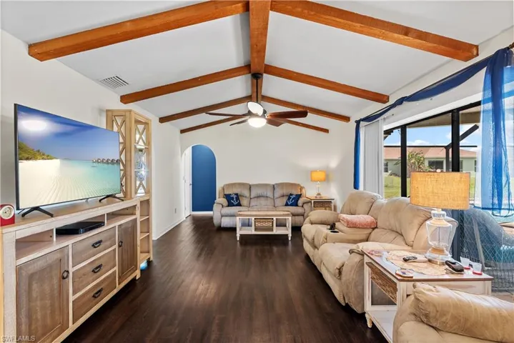 This beautifully updated home is located in heart of the NW Cape Coral. It is situated on a TRIPLE lot, which is a rare find. This home has three bedrooms plus a den, which provides plenty of space for family and guests and has two beautifully renovated bathrooms. The roof, AC system, and hot water heater are all new, which means you won’t have to worry about these major expenses, and this home is also NOT in a flood zone. The kitchen has been remodeled with quartz countertops and stainless-steel appliances, and both bathrooms have also been tastefully updated. There are tile floors in the wet areas and luxury vinyl plank floors throughout the rest of the home. Outside, there is a new saltwater pool that has been heated for your enjoyment. Other features of this home include a new shed for your additional storage needs, newer septic, a new well pump and solar panels for the entire home. The home also has a VA ASSUMABLE LOAN at 2.875% for buyers. Schedule your private showing today to see this gem of a property!