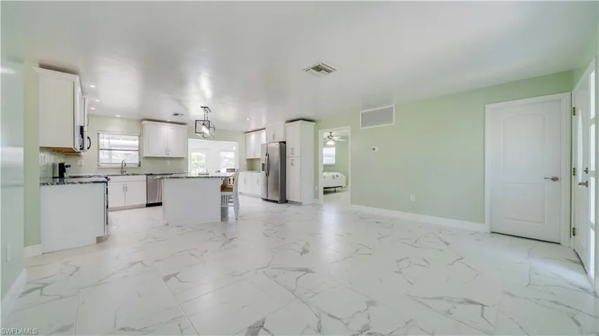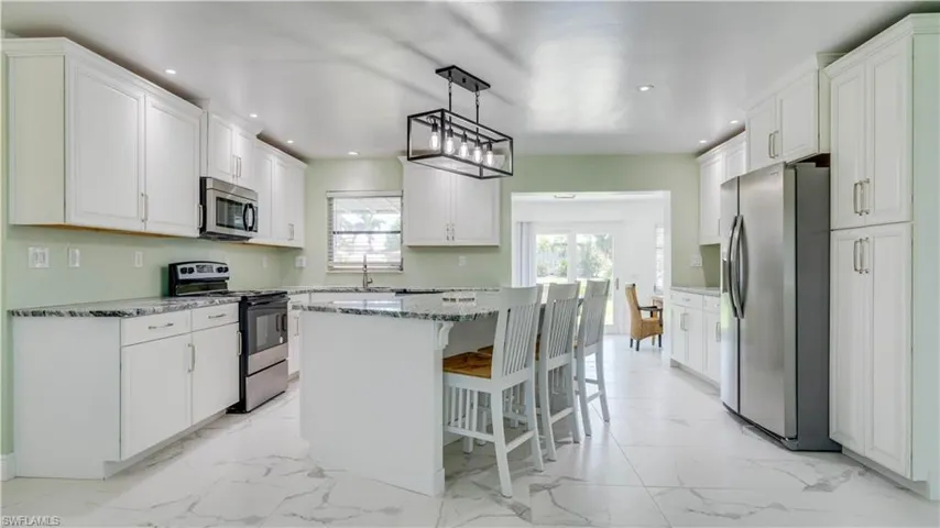 An exceptional opportunity and one of the best values on the water in St. James City for deep, direct Gulf access!** Enjoy true boating lifestyle with **no bridges and quick access out to the open water**, making spontaneous fishing trips to Pine Island Sound and sunset cruises to Sanibel, Captiva, Cayo Costa, and Boca Grande part of your everyday routine. A **new seawall (2019)** adds significant value and peace of mind, offering long-term durability and protection—an upgrade that sets this property apart from others on the market. Ideally located in the heart of this golf cart–friendly island community, you’re just minutes from waterfront restaurants, marinas, and the laid-back charm that defines St. James City living. Inside, the home is light, bright, and inviting with an open-concept layout designed for effortless entertaining. The updated kitchen is the centerpiece, featuring a large granite island, custom wood cabinetry, stainless steel appliances, and a built-in entertaining bar. An enclosed Florida room under air adds approximately 240 square feet of flexible living space—perfect as a dining area, lounge, or home office.