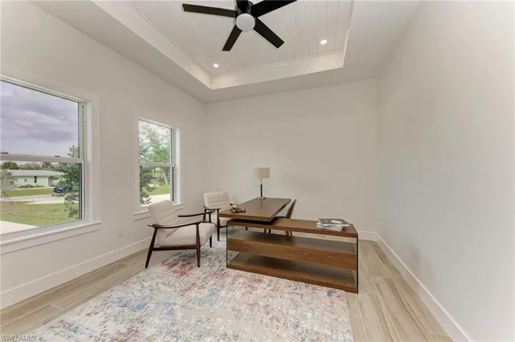 STUNNING 2025 JUST COMPLETED HARBORFRONT POOL HOME AWAITS NEW OWNERS! This custom 3 bedroom, 2.5 bathroom + den, 3 car garage WATERFRONT pool home has it all, including a metal roof, impact rated windows & doors, incredible details, including custom cabinetry with soft closure, tile floors throughout, stone counters, upgraded appliances & light fixtures, and more! As you approach the front door, notice the custom & upgraded garage doors with wood look finish. Inside, a welcome foyer is open to the spacious living room with custom ceiling details and recessed lighting, all with sweeping harbor views and incredible sunrises and sunsets! Off to the right side, find a conveniently located guest half bathroom, a large laundry room with cabinetry to leads to the garage, a spacious guest bedroom with beautiful water views and a large closet, and a separate guest bedroom with en suite bathroom access to a full bathroom with beautiful tile work in the shower. Off the foyer, the spacious office/den is a great place to work with amazing natural light and could serve as a 4th bedroom. The great room is perfect for entertaining, with a built-in bar area, and is also open to the spacious gourmet kitchen with large island/breakfast bar, corner pantry, amazing cabinet space, under counter lighting, upgraded appliances, and is also open to the dining room, all with wide water views of the harbor from multiple sliding glass doors. Off the living room, the primary suite is the ultimate retreat, with a beautiful bedroom with sliding door access to the lanai/pool, beautiful water views, dual walk-in closets, and a spa-quality bathroom with dual vanities with lighted mirrors, a lovely, tiled shower, a free-standing soaking tub with wall filler, and a private toilet room. Outside, enjoy an extra deep covered lanai, stubbed for a future outdoor kitchen with hot/cold water and drain connection, and power. The pool and spa are huge and there is still a spot to enjoy the sun as you lounge by the pool. Outside in the backyard, the concrete seawall and excellent harbor access are perfect for you to add your dock and bring your boat or launch your kayaks/paddleboards. This home also has a grandfathered in boat ramp, perfect for a small boat launch! Nearby to Punta Gorda, Sunseeker, and so many great restaurants, shops, golf, and more, this home is incredible! Prefer an unfurnished home? Check out the adjacent listing by the same builder, too! BE SURE TO CLICK THE FULL VIRTUAL TOUR LINKS FOR DETAILS!