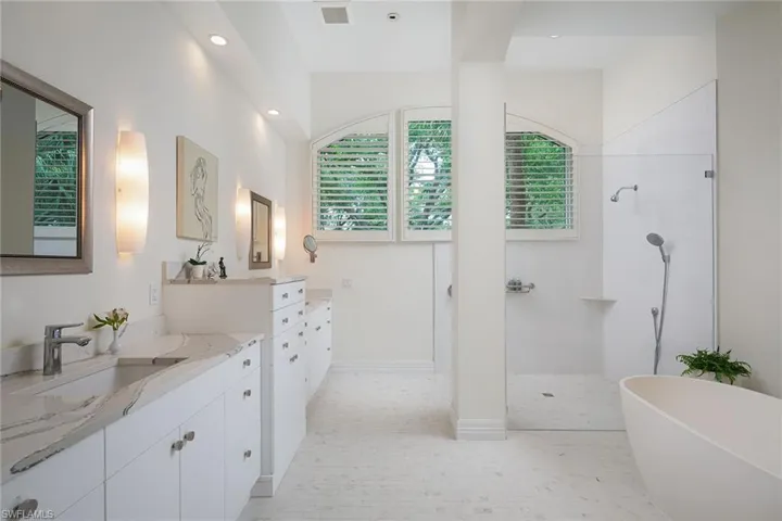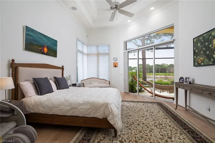 Spectacular forever lake and golf course views in the heart of Collier’s Reserve are the backdrop for this stunning London Bay built home. Boasting sophisticated, renovated kitchen and baths, this home offers unparalleled living space inside and out and an open great room with soaring 18-foot ceilings and 10-foot pocket sliders. Renovated cook’s kitchen with quartz center island, new Wolf eight-burner stove, Sub-Zero refrigerator and wine cooler. Gorgeous spa-like renovated primary bath with large walk-in shower. The versatile floor plan includes large den with built ins and flex room on first floor and gathering area upstairs with two ensuite guest rooms, large balcony and huge storage room. The timeless travertine floors complementing the wide plank light oak flooring, abundance of windows, natural light and immaculate condition make this sprawling beauty move-in ready. The new roof and picture window screen cage complete the package. As of March 22, there is no one on the Collier’s Reserve resident golf membership wait list. Home has third golf cart garage in rear with paved path to driveway. Collier’s Reserve is an intimate community with only 224 homes less than two miles from Vanderbilt Beach. Collier’s Reserve natural beauty on 450 acres was recognized as the world’s first-ever Audubon Signature Sanctuary.