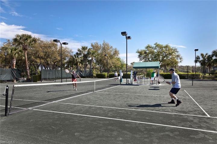 The perfect Naples home with pool, 18 holes of golf, tennis courts and the beach a few miles away. Fabulous North Naples location with everything at your fingertips. Rarely available on a nice large corner lot close to the clubhouse, fitness center and driving range. The home was recently updated with new floors and beautiful countertops in kitchen and baths with new paint and furniture by Robb & Stuckey. Ready to enjoy or rent out until you are ready to use it. Golf membership can transfer to a renter. The primary bedroom has a king-size bed, 3rd bedroom/den has a queen sleeper sofa, 2nd bedroom has twin beds. This house is open and perfect for entertaining family and friends in a lively community with quick access downtown or uptown for fine dining, hospitals, RSW International Airport and Wiggins Pass State Park with daily or annual passes available. Lovely clubhouse with a charming dining room inside and outside.