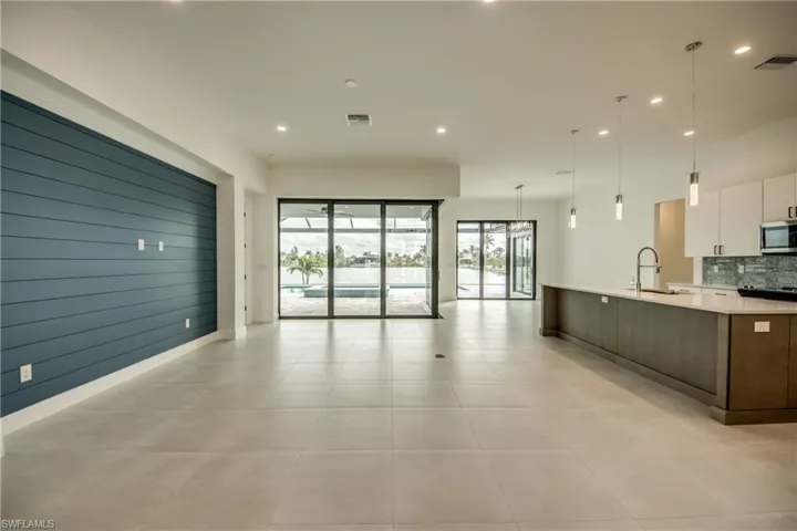 Elegant Coastal Contemporary New Construction Home on an oversize property with Expansive Lake View. Expansive Kitchen with large Island for family entertaining. This home features a 9ft Tall Corner Pocketing Sliding Glass Door to open the indoor living area to the outdoor Lanai and Pool for year-round enjoyment. The home features 4 bedrooms with 3 bathrooms and a large 3 Car Garage.