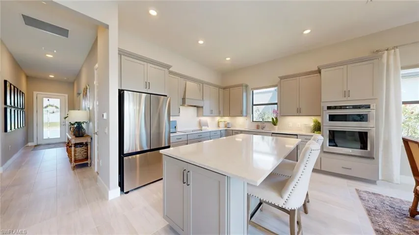 Avalon Park, Stunning, Exceptionally Optioned, Move In Ready Rare “Highgate” Model, Distinctive Series Home, w/Impact Windows/Doors/Extended Rear Lanai, on Premium Water Lot, Widest Body of Water in Development, 1828 Sq.Ft., 2186 Total Sq. Ft. Feel at Home in this 4 BEDROOM, 2 Full Baths, 2 Car Garage, Options Include; 10’4” Ceilings, 3’ Widened Custom Paver Driveway, Impact Windows & Doors Allow You to Never Have to Worry About Putting Up Manual Hurricane Shutters, Open Concept with Large Windows Provide for Plenty of Natural Light, Rear Patio Ext. w/Screen Enclosure, Gourmet Kitchen Option w/SS Kitchen Aid Appliances/Cooktop, Plus JenAir Dishwasher, 42” Stone Gray Brelin Cabinets w/Convenience Pckg/Crown/Double Roll-Out Trays, Quartz Tops & Quartz Slab Backsplash, Wood Canopy Vented Hood, Oversized Kitchen Island, Under cabinet Lighting, Touch Faucet, Porcelain Plank Title Flooring Throughout, Heavy Glass Master Shower, Finished Laundry Rm w/Quartz Tops/Utility Sink Creates a Convenience Place to Complete Many Home Tasks, 8’ Six Panel Interior Doors, 4” Baseboard, Levolor Window Coverings, High Quality Light Fixtures & Ceiling Fans Throughout, Fully Insulated 20×20 Garage w/Permitted Mini Split AC/Epoxied Floors/Creates Additional Living Space for Whatever Your Needs You May Have; Workshop, Game Rm, Home Office, Etc, Possibilities Unlimited. Property Has Too Many Options to List (List Available Upon Request). Property Walking Distance to K-12 Donahue Academy. Short Drive, Bicycle Ride to Town Center, Ave Maria University, Water & Town Parks, Fitness Center, Restaurants, Publix Market, “Come Experience the Beauty that is Ave Maria”
