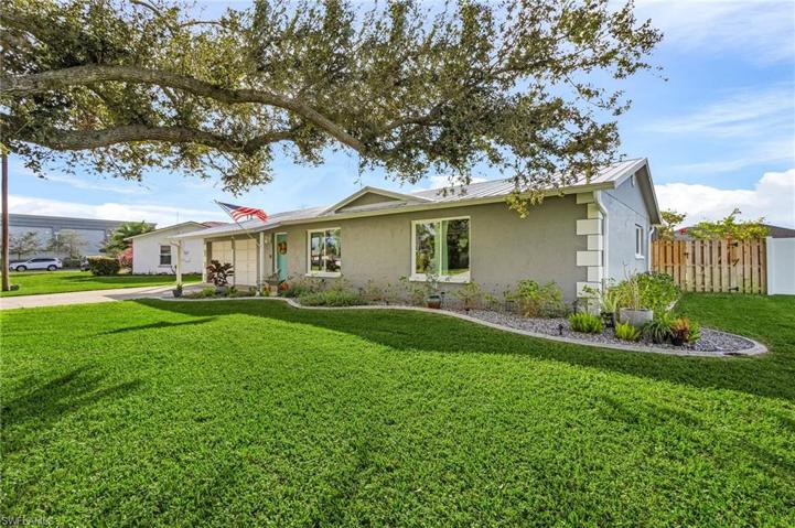Prepare to be impressed with this recently updated move in ready home. With a 2023 New Metal Roof with a 40 year warranty, Hurricane impact windows, and a 2 car garage, this home is both beautiful and functional! This home is perfectly situated in the heart of Cape Coral, conveniently located minutes from all the popular dining and shopping centers, including bridges to Ft. Myers. Home updates include Quartz and Granite throughout, Engineered wood flooring, a 40 Gallon AO water heater with warranty, Tile in both bathrooms , new landscaping and sod and so much more! You will love to spend time out back in the huge 40×14 new patio enclosure! The back yard features a New Fenced in yard with plenty of privacy. This Southern Exposure home has tons of room for that dream pool you’ve always wanted! Schedule your appointment today!
