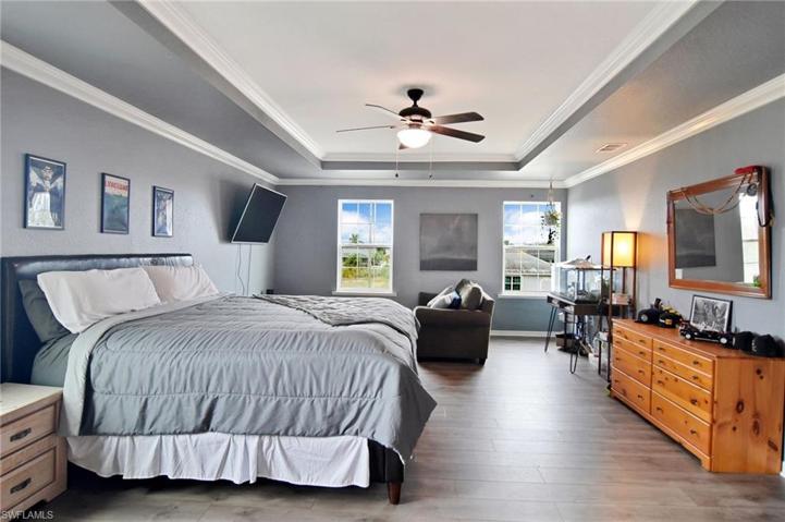 Check it out! This SW Cape Coral pool home sits on a triple lot, has 6 beds/4.5 baths, & has almost 4,000 sf of living space! Other awesome features include crown molding, luxury vinyl plank flooring & 2 primary suites. The kitchen has a butcher block countertop, wine cooler, double oven, stainless steel appliances, and a large walk-in pantry. The living room has a built-in entertainment center with electric fireplace and a hidden TV (so cool). Step out back to a big screened in patio and fenced in yard that boasts a custom saltwater pool & spa. This home also has an upstairs den/gaming area and upstairs utility room with washer/dryer set. The MASSIVE master suite has his/her walk-in closets and an updated bathroom with a large stand-alone tub, step-in shower, and a new vanity with his/hers sinks. This property has tons of closet/storage space, AND a 3-car garage. 4 of the rooms have bathrooms attached… the list goes on! This home is perfect for a big family or an investor looking for space to sleep many guests! Close to Pine Island & Matlacha. Restaurants and shopping close by! NOT in a flood zone! NO damage from hurricane Ian. Seller is very motivated! Owner to pay assessments.