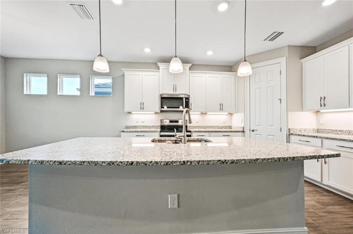 Elegant and a must see SHELBY Single Family home located in Seasons at Bonita. 3 bedroom plus a den with double glass doors, 2 full bath, 1 half and 1 outdoor bath, 2 car garage with an extended driveway. Plank tiles throughout the home(no carpet). Kitchen is equipped with 42″ white cabinets; granite counters; pantry and Whirlpool stainless steel appliances. Home features Tray ceilings located in Foyer, Great room, Den and Master Bedroom and has Impact windows. Owner’s bath has dual sinks; separate tub and shower and a huge walk in closet. Laundry room is equipped with washer and dryer. Screened in lanai with a outdoor bath overlooking the beautiful lake and fountain. The garage is oversized and can fit up to 4 cars . This gated community has a lot to offer; quick walk to the Clubhouse and all the other amenities including a full kitchen in the Clubhouse, Community pool, palm tree-filled beach area, Tennis, Pickleball and Bocce courts, Exercise room, dog parks and bike and jog paths. Centrally located in between Naples and Ft Myers and is close to everything; I-75, restaurants, Gulf beaches, shopping and so much more to enjoy.
