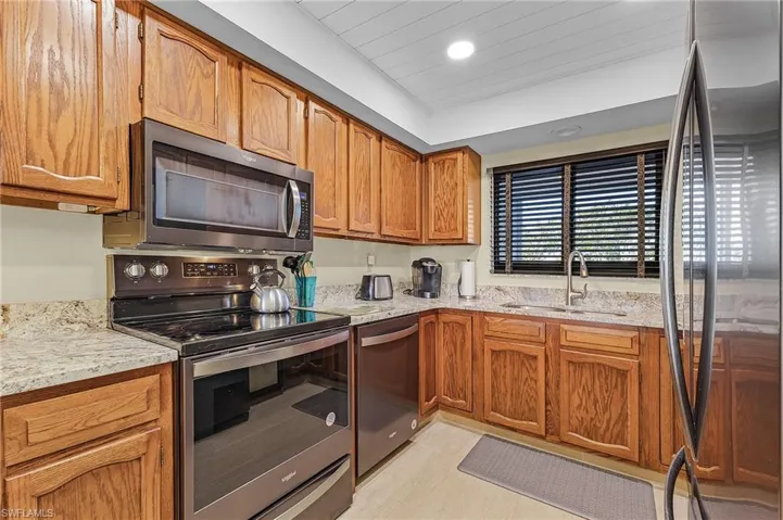 Terrific location with golf course and lake views from this 3rd floor 2-bedroom unit with many updates … AC system, impact windows and sliding doors, LVP flooring and lanai tile all new in 2023. Kitchen, appliances, master bath, water heater and electrical panel all were updated in 2021. Covered parking spot under the building and just a few steps to the heated village pool and gas grills. Enjoy this tropical paradise and the active lifestyle offered with INCLUDED amenities at The Landings Yacht Golf & Tennis Club. Golf, tennis, pickleball, marina, restaurants, entertainment and more. Short drive to the beaches of Ft Myers and Sanibel, downtown Ft Myers river district, great shopping, dining, arts, sports and more. Come live the dream!