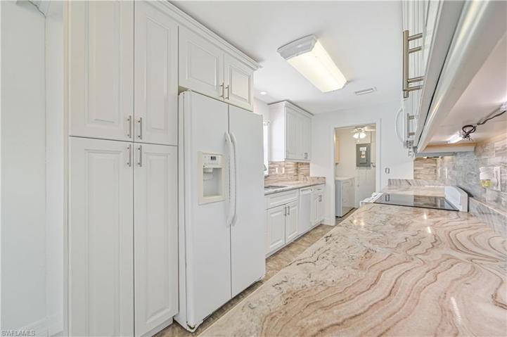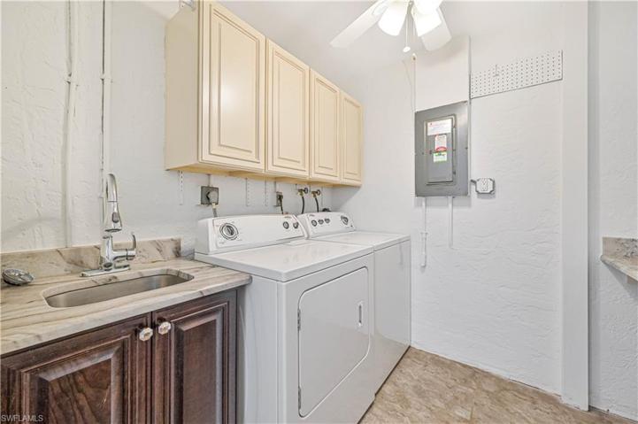 This charming 3-bedroom, 2-bathroom pool home, complete with a one-car garage, is a true gem in a highly sought-after location. Nestled in a desirable neighborhood, this property offers the perfect blend of comfort and convenience. The spacious bedrooms are ideal for a growing family or for those who desire ample space. The inviting pool is the centerpiece of the backyard, providing a tranquil oasis for relaxation and entertaining. With a one-car garage, you’ll have plenty of room for your vehicle and additional storage. This home’s prime location in San Carlos Park ensures easy access to schools, parks, shopping, and dining, making it a dream for anyone seeking a delightful and well-located residence. This home has been freshly painted and has been renovated for new homeowners! This home has crown molding and oversized baseboards, true luxury. Lanai area is pavers with a warm heated salt water pool.