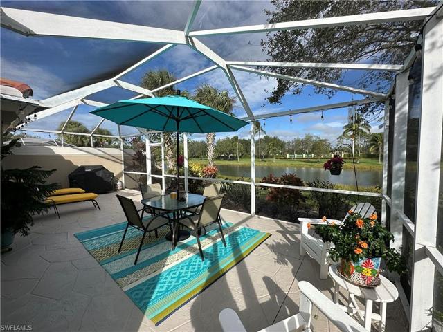 Quick closing is available – enjoy the home this season! This beautiful extended Capri Villa offers a long list of updates, featuring: a New roof in 2023!, newer hot water heater, a/c unit replaced in 2019, stainless steel kitchen appliances in 2020, solar tubes were added to great room, so Clean and freshly painted inside and out and so much more! Open den, 2 bedrooms, 2 bathrooms, 2 car garage, and screened patio facing wide lake views with no homes behind you! Split bedrooms with each having it’s own bathroom and walk-in closet. The extended Capri floorplan provides so much flexibility for furniture placement. Ventura Court has easy access to the gate and is a short walk to the sports and amenities centers. Tennis, pickleball, bocce, gym with lap pool, on-site restaurant, 2 heated resort pools, and miles of paved walkways with Venetian style bridges through out the community. Village Walk recently repaved all the roads and parking areas, renovated the restaurant and lap pools, and added pickleball too. Village Walk is less than 5 miles to the sugar sands of Vanderbilt beach and 4 miles the shopping and dining gem – Mercato! You will love it here!!
