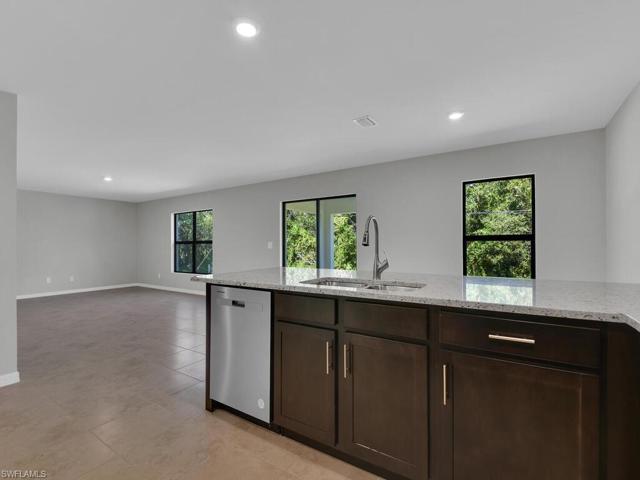 Welcome to the Pearl! Custom built by Douglas Brooke Homes. This New Construction home is finished and ready for your family today! NO HOA PAYMENT. The Pearl is a true open floor plan featuring an open view from the kitchen area to the great room, perfect for entertaining guests. This desirable floor plan also offers 3 beds, 2 baths, 2 car garage with a spacious lanai. Split bedrooms give the owner’s suite a full wing of the house highlighted with Dual sinks in the ensuite. High end finishes include oversized extended paver driveway, real wood cabinets, huge island in the kitchen, granite countertops throughout the home, porcelain tile flooring, massive walk-in shower and stainless-steel appliances. Some luxury features include a video doorbell, a learning Nest thermostat, garage door with wi-fi enabled opener, and an automatic sprinkler system. If applicable, buyers may qualify for Closing Costs credits at closing. 6% rates for qualified buyers. Conveniently located to I-75, RSW, restaurants, shopping, hospitals and nightlife. This is a great opportunity, do not miss out on it!