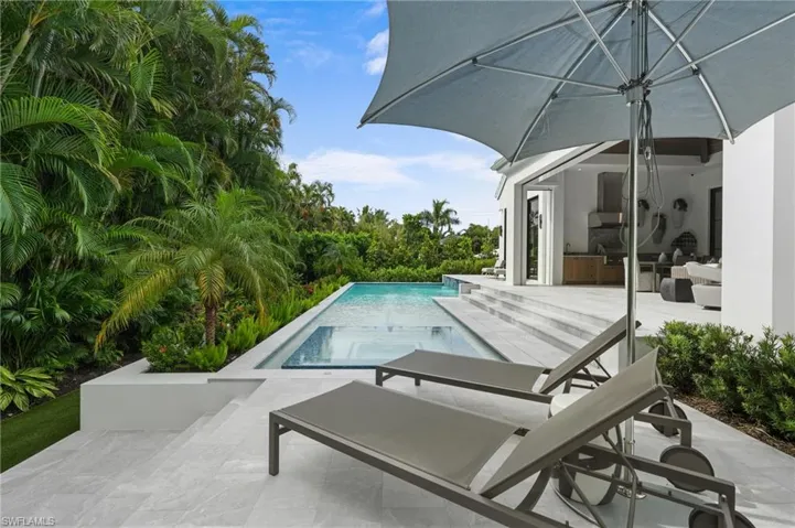 Experience modern luxury in this brand-new Moorings estate built by renowned Borelli Construction. Spanning 4,400 square feet on one level, this residence offers five en-suite bedrooms, with one designed as a private office with soaring ceilings. Fully furnished and styled by Clive Daniel Home, the interior showcases custom wall treatments, designer finishes, and thoughtful details throughout. The chef’s kitchen is complemented by a spacious butler’s pantry functioning as a fully equipped second kitchen, while the stunning great room boasts a dramatic ceiling with LED accent lighting. Wolf and SubZero appliances, European white oak flooring, Samsung Frame TVs, Crestron home & lighting automation, and a whole house generator provide the ultimate in luxury and convenience. The lanai features motorized screens and shutters for comfort and storm protection, while the desirable eastern exposure delivers year-round sun on the pool and a shaded lanai at sunset. Third-level pull-downs in the primary closets maximize storage. Located west of Crayton Road across from waterfront homes, this elevated residence meets current FEMA requirements for the home and all mechanicals. Its central location offers quick access to the private Moorings Beach access and all that Naples has to offer.