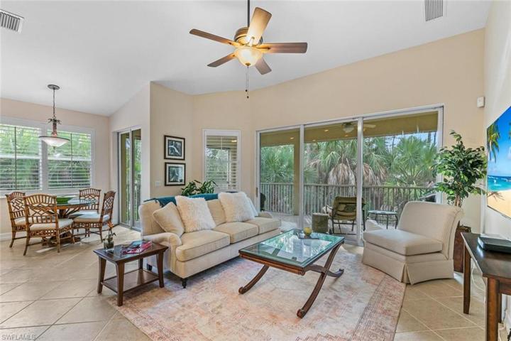 Welcome to your dream condo in beautiful Naples! This move-in ready, turnkey 3-bed+den/2 bath gem offers the perfect blend of modern comfort and picturesque tranquility. Start your morning with a cup of coffee on your spacious screened lanai, where you’ll be greeted by a view of lush landscaping offering the utmost privacy. You’ll be captivated by the open concept floor plan and the modern updates that grace every corner of this condo. The kitchen, complete with a wine cooler and walk-in pantry, is perfect for preparing gourmet meals or hosting dinner