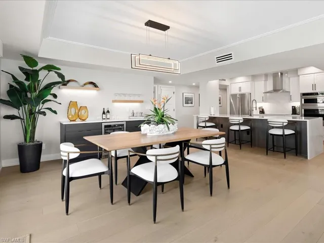 THE BEST OF THE BEST! COME EXPERIENCE THIS MASTERPIECE OF UPSCALE SOPHISTICATION IN DECOR AND DESIGN. THIS OPULENT 3 BEDROOM 2.5 BATH IS AS BREATHTAKING INSIDE AS THE VIEW IS OUTSIDE. THE DECOR IS BUILT UPON HAND CRAFTED LIGHT OAK FLOORS, AND COMPLEMENTED WITH ROBB AND STUCKY DESIGNER FURNISHINGS AND APPOINTMENTS. THE ALL NEW CUSTOM KITCHEN HAS STATE OF THE ART APPLIANCES, QUARTZ COUNTERS WITH A MATCHING ISLAND FEATURING A LARGE FARM STYLE SINK AND POSH BACKSPLASH. JUST OFF THE DINING AREA IS A BUILT IN BAR WITH WINE COOLER QUARTZ COUNTERS AND A FANCY BACKSPLASH. THE BAR AREA IS SHOWCASED BY FLOATING SHELVES WITH LIGHTS, AND ACCENT PIECES. THE ONE OF A KIND DINING TABLE HAS IMPORTED CHAIRS THAT MATCH THE BAR STOOLS. THE DINING LIGHT FIXTURE IS MAGNIFICENT. THE CASUAL LIVING ROOM HAS SHOWROOM QUALITY FURNITURE. ALL NEW IMPACT GLASS SLIDING DOORS IS THE BACKDROP FOR THE SPARKLING GULF VIEWS. THE PRIMARY SUITE IS A FASHION STATEMENT WITH A DESIGNER BED, LAMPS, AND FURNITURE FIT FOR A MAGAZINE LAYOUT. THE STUNNING PRIMARY BATH IS LUXURIOUS WITH GLASS DOORS, BRILLIANT QUARTZ COUNTERS WITH TILE WALL, AND A LARGE SHOWER WITH A UNIQUE WATERFALL TILE ACCENTS. 2 ADDITIONAL BEDROOMS ARE ON THE OTHER SIDE OF THE CONDO WITH RITZY FURNITURE AND PLUSH CARPETING. THE SECOND BATHROOM HAS A GENEROUS SIZE VANITY WITH QUARTZ COUNTERS AND ANOTHER LARGE SHOWER WITH IMPORTED TILE AND DESIGN. THE ICING ON THE CAKE HERE IS THE POWDER ROOM WITH ITS CUSTOM WALL PAPER , LIGHTING, AND SUPER COOL MIRROR. THE LARGE WRAP AROUND LANAI IS ALL ABOUT THE VIEW AS YOU SIT AND RELAX IN PARADISE. THE LUCKY FEW WHO CAN EXPERIENCE THIS LIFESTYLE WILL COUNT THEIR BLESSINGS EVERYDAY. PREPARE TO BE DAZZLED!