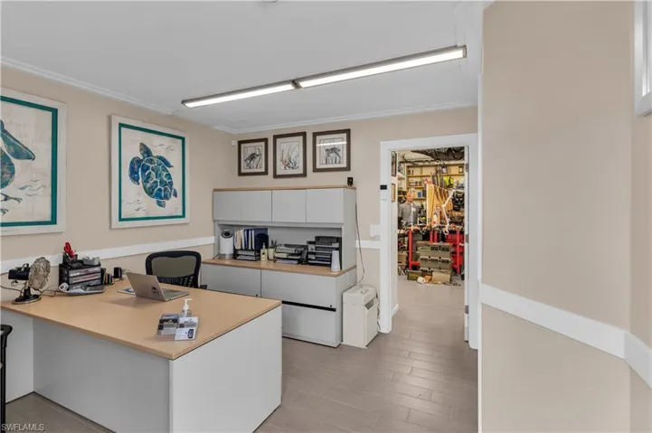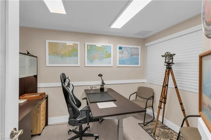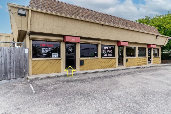 Commercial ”C5” condo/warehouse has the perfect location in the heart of Marco Island FL . This commercial industrial condo with 2 functioning built out offices, kitchenette, bathroom and storage / workshop with 12 ft ceilings and roll up 10 ft tall bay door rear entrance. In addition the unit is inclusive of 2 deeded parking spots in the rear of building which is gate protected. The back workshop area has an exuberant amount of storage to hold additional equipment, tools or any items necessary to run your business efficiently. This unique and rare commercial unit can also be used for as a for your own personal workshop, auto storage with car lifts, art studio or for any business that just needs additional space and road frontage on Marco Island. It is also the perfect location if you have and RV / Motorhome or a boat that needs storage. A new electrical panel was installed along with a new 220 amp service.