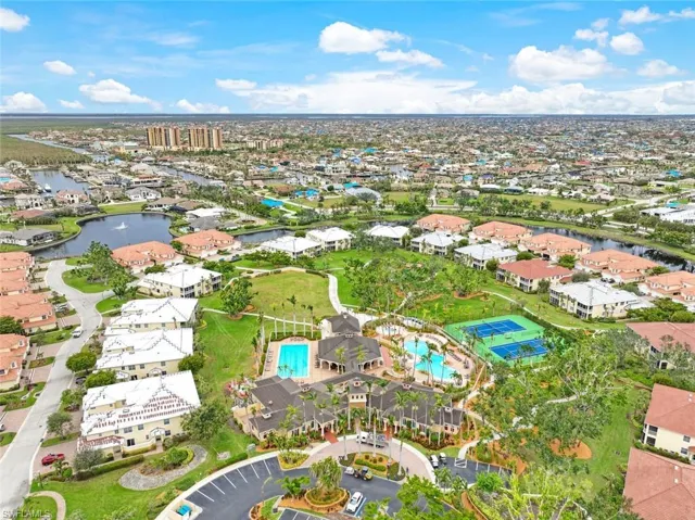 dining room, eat-in kitchen and a breakfast bar. Gather with friends around charcuterie boards at the oversized center island or on one of the two patios-one of the few with a private built-in grill. The owners suite has doors to the screened lanai, a walk-in closet & en suite bathroom with walk-in shower, jetted tub and dual sinks. There is a sunny guest suite featuring a Murphy bed. Great location by The Westin with shopping, dining, boat dockage all available within a two-minute walking distance. To end your day, enjoy the quiet moon-lit lanai, or an evening stroll by the dock and listen to live music at the marina restaurants/bars. The development has two beautiful pools (leisure and lap), club house, gym, tennis and beautiful grounds for your enjoyment. The sunny lanai is the perfect place to enjoy the beautiful SW FL outdoors. Tarpon Gardens is well built and has been flood/storm safe through all the past storms. Property was built according to Florida’s 2004 building code (on elevated grounds to prevent flooding, with hurricane impact windows, etc.)
