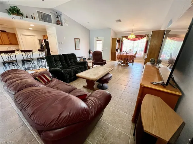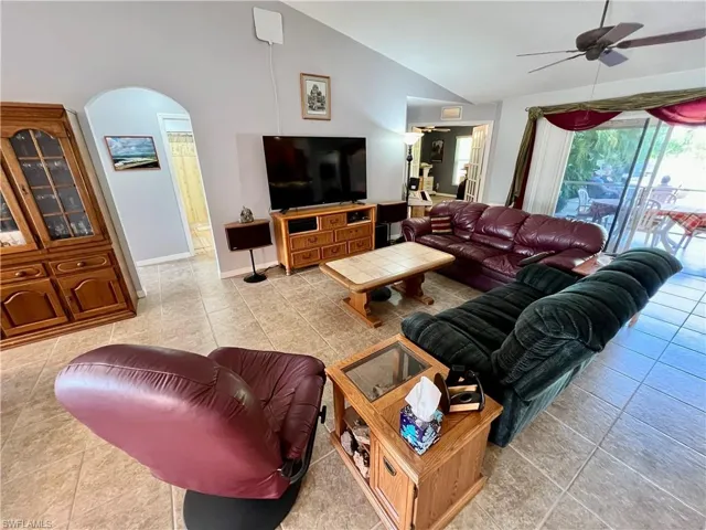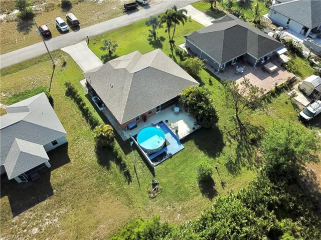 This astounding home has been very well maintained and lightly used by the same snowbirds for the last 15 years, this is the home you want! BRAND NEW roof was just completed February 2024 and sellers are installing a BRAND NEW AC in April 2024 that comes with a 2 year complimentary maintenance package! The layout of this 3/2/2 boasts almost 1,800 square feet of living area and includes a spacious den that could be used as a 4th bedroom or utilized as a home office. Features tile flooring throughout and travertine in the bedrooms, hurricane impact windows, in wall pest control, security system and cathedral ceilings. The kitchen has solid surface Corian counters on top of upgraded solid wood cabinets, reverse osmosis drinking water system and a pantry. The home has extra storage with additional linen closets as well. The master bedroom has plenty of room for all your larger bedroom furniture and has an oversized walk in closet with more than enough room for a large wardrobe. The master bath is loaded with dual sinks, Corian counters, walk in shower, soaking tub and a linen closet. The home shines further as you rest on your screened lanai overlooking an amazing raised deck area that is perfect for barbequing as the kids swim in the pool! The back yard has trees lining the side for privacy while you swim and has plenty more space beyond the deck to roam. The grass is kept lush by the automatic sprinklers and the water system has been upgraded to a 2 stage sealed system with increased water pressure. The home is situated on a dead end street with no pass through traffic for a much more peaceful location! Only minutes from shopping, schools, restaurants and a short drive to Fort Myers. Call or click today to schedule your showing!