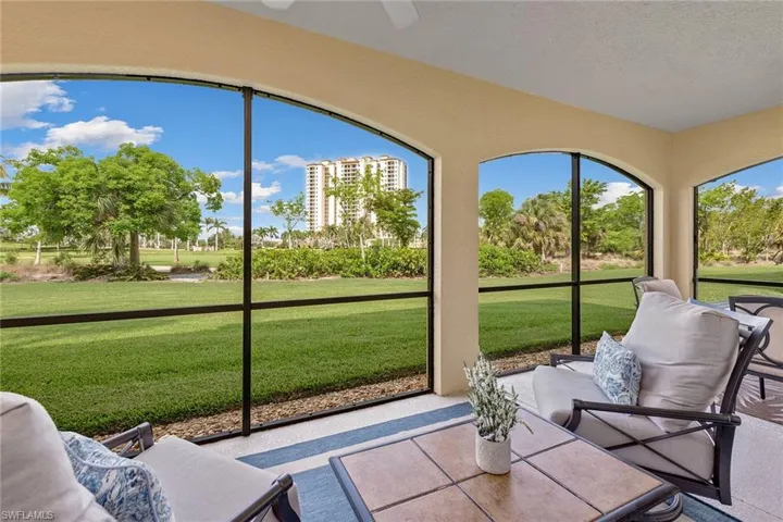 Experience the ease of luxury living in this beautifully furnished first-floor coach home, in the sought-after Rialto enclave of the prestigious gated Hammock Bay Golf & Country Club. Combining the spacious feel of a single-family home with the low-maintenance convenience of condominium ownership, this residence features three bedrooms, two baths and a two-car garage, ideal for seasonal or year-round living. Enjoy desirable western exposure from your expansive screened lanai with no-see-um screening, offering peaceful golf course views and a seamless extension of your indoor living space. Impact-resistant doors and windows provide enhanced security and year-round peace of mind. Inside, you’ll find abundant natural light and new tile flooring throughout the main living areas, elevating the home’s elegance and style. The open-concept kitchen is appointed with white cabinetry, under-cabinet lighting, recessed ceiling lights, a pantry and a full suite of appliances including a refrigerator with icemaker, range, microwave and new dishwasher (2022). A charming breakfast nook framed by a large window provides lanai access, while the formal dining room features custom wall mirrors that visually expand the space. The light-filled living room flows effortlessly to the outdoor lanai through glass sliders, ideal for relaxed lounging and entertaining guests. The spacious primary suite offers direct lanai access, a generous walk-in closet and an en-suite bath with dual vanities, full-width mirrors, walk-in shower with bench and a linen closet. Two guest bedrooms enjoy their private wing and share a well-appointed bath with a shower/tub combination. A functional laundry room includes a washer and dryer, utility sink and overhead storage cabinets. A new water heater (2023) adds further value and peace of mind. This exceptional residence is within a sought-after community offering resort-style living just minutes from the executive airport, award-winning white sand beaches, renowned golf courses, fine dining, casual waterfront restaurants, boutique shopping, grocery stores, parks, art galleries, marinas and yacht clubs, and all the popular cultural and recreational offerings of Naples and Marco Island.