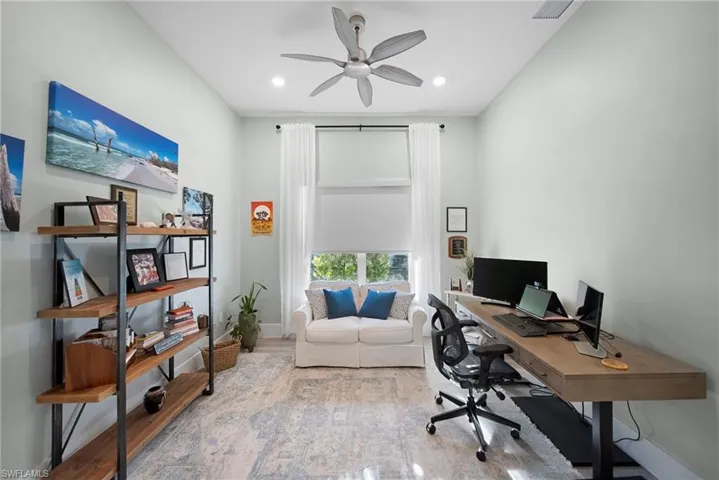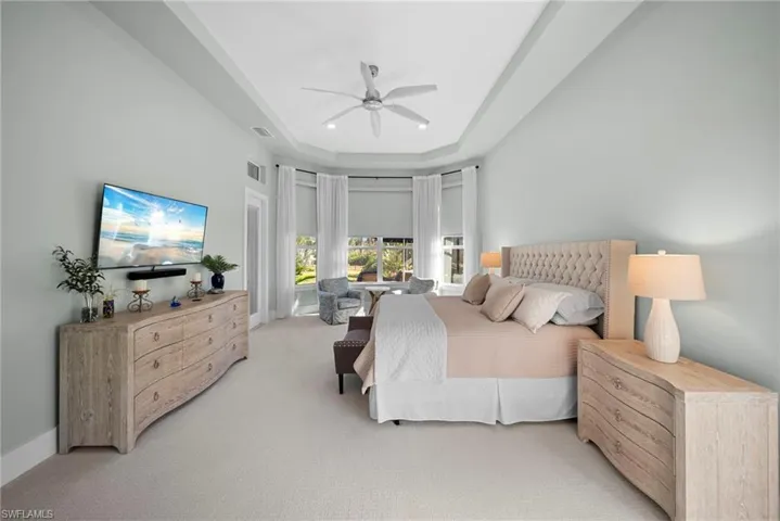 The thoughtfully designed split floor plan offers three bedrooms plus a den, each bedroom with its own private bath. The expansive primary suite serves as a true sanctuary, featuring a tray ceiling, comfortable sitting area with direct lanai access, and a spa-inspired ensuite bath.