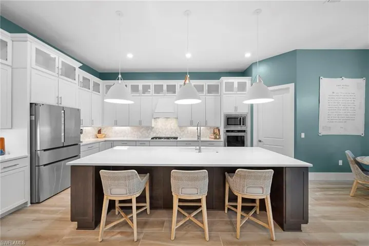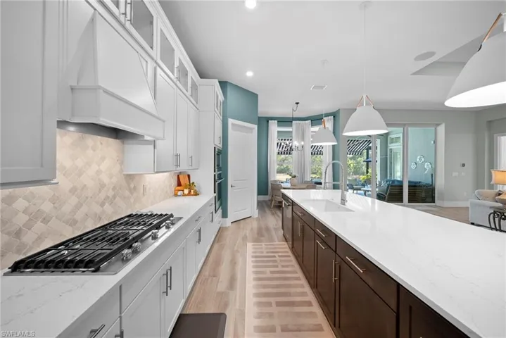 The kitchen blends style and function with a large quartz island offering additional storage, a gas cooktop, walk-in pantry, and inviting eat-in design that naturally encourages gathering.
