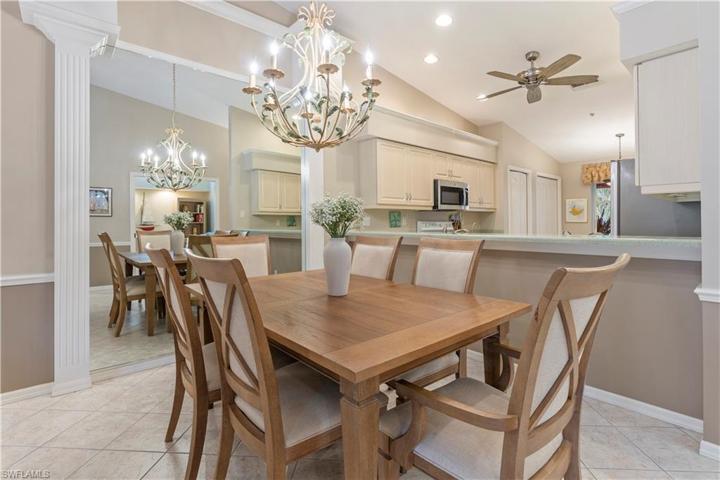 This second-story, two-bedroom, plus-den, two-bathroom condo offers gorgeous lake and golf course views of Naples Heritage overlooking the 17th green. With both front and back lanais, this unit offers plenty of outdoor space to enjoy the Florida lifestyle and beautiful views. The condo offers elegant cathedral ceilings, and the additional den makes the perfect home office or family room. The split floor plan creates privacy and is excellent for entertaining guests. This condo features a one-car detached garage. Naples Heritage is a premier bundled golf community conveniently located just minutes from downtown Naples and near plenty of shopping and dining. The community features an 18-hole Gordon Lewis-designed golf course with regular leagues and tournaments, two dining options at the Palm Terrace and the clubhouse, a modern fitness studio featuring regular classes, 6 har-tru tennis courts, and four pickleball courts both offering leagues and clinics, endless social events, walking trails and more. This condo is being offered turnkey! Experience this incredible lifestyle!