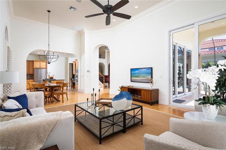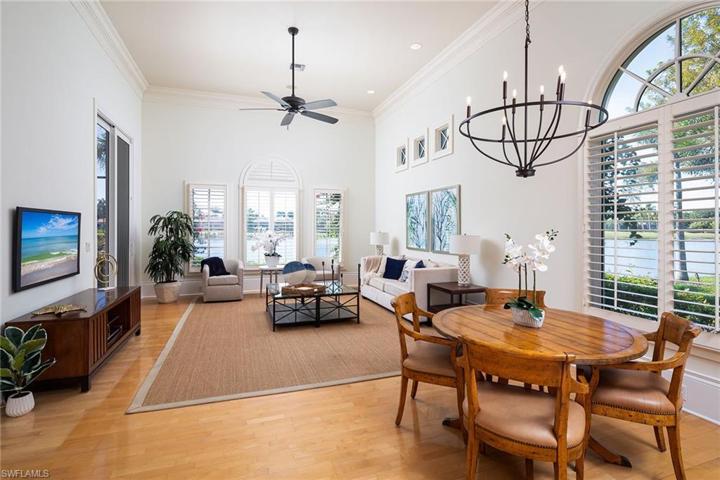 Presenting a rare opportunity to own this sunlit home with sweeping vistas of the lake, closing hole of the Palm Course and elegant award-winning Grey Oaks Country Club. Whether you’re entertaining guests or enjoying quiet evenings with family, the surrounding beauty provides the ideal setting. Features include 12- and 14-foot-high ceilings, 14-inch crown molding, new roof installed in 2022, freshly painted interior and exterior, and well-appointed kitchen with gas stove, and impact resistant sliders. The primary bedroom and den are on the first floor with the additional three bedrooms on the second floor providing plenty of space for family and guests. The private patio facing south invites you to soak up the Florida sunshine and revel in the serenity of your surroundings. With its incredible views and sought-after location in Naples, this property embraces an upscale and comfortable lifestyle ready for you to experience. Grey Oaks has state-of-the-art amenities including three golf courses, a 30,000-square-foot wellness center, active tennis, pickleball, fitness and social programs. Old Naples, fine dining, beaches, and international and private airports are easily accessible.