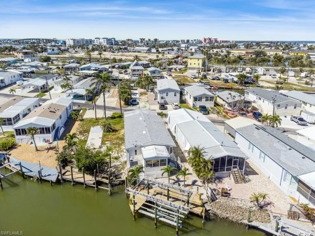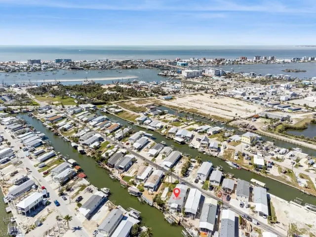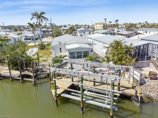 SELLER FINANCING AVAILABLE WITH JUST 10% DOWN! Located on a deep-water canal with direct Gulf access, this 3-bedroom, 2-bath home includes a 10,000 lb boat lift, kayak launch and a private dock. Perfect for boaters looking for a low-maintenance Florida home near the beach. Fully renovated inside after Hurricane Ian, the home features light gray waterproof luxury vinyl flooring, recessed lighting, granite countertops, white wood cabinets and stainless-steel appliances. The master suite includes two separate vanities and a walk-in tiled shower. Guest bath includes a tiled tub/shower combo. New AC, washer and dryer, and plenty of storage throughout. A one-car garage, carport and extra parking complete the setup. Located on San Carlos Island in a 55+ community with low monthly fees that include water, sewer and trash. Walk or ride to Fort Myers Beach, Doc Ford’s, Dixie Fish Company and the Key West Express. Whether you’re looking for a seasonal escape or a full-time home, this is your opportunity to own a piece of paradise with unbeatable access to the water and all that Southwest Florida has to offer. One or more photo(s) have been virtually staged.