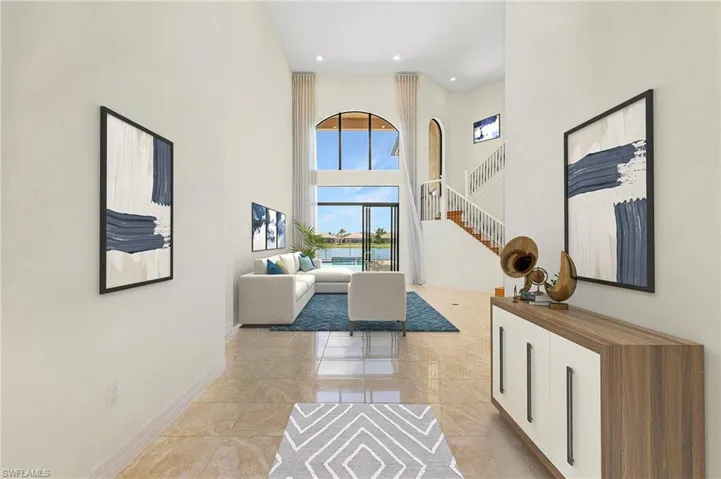 Seller is ready for an offer!!!Highly desired and luxurious Riverstone in Naples. Spectacular home In pristine condition now offered at $1,6 million. Includes hurricane impact glass through a custom rarity in this community, this home is ready for you! Prestigious & rare, expanded layout of the Dubonnet Grande model. This beautifully landscaped Estate Home sits proudly on a unique premium corner lot, panoramic lake view where you can bask in vibrant sunrises & sunsets, play with the kids in extra-large green areas and have the security of a safe & fenced yard. Water views are throughout the home with vaulted ceilings for a bright and airy feeling. At over 5,989 sq. ft., this is a 6 bedroom, 5 ½ bathroom, three-car garage, living room, formal dining room, Florida room, entertainment room beauty with a unique added upstairs area. The Master bedroom and 1 bedroom are downstairs, a very desirable layout. The spacious 1st floor master has a spa-like bath with dual sinks, step-in shower and custom walk-in closets. Upstairs are all natural wood floors and a wonderful game room/entertainment room. PLUS there is a huge bonus room. It is waterfront view space that has its own screened lanai, closet and bath (can be used as a huge master BR sized 6th bedroom or mother-in-law suite). Designer lighting & cathedral ceilings with luxury window treatments is included. The kitchen is a Gourmet Chef’s dream with island, premium cooktop, vented hood, and walk-in pantry. On the outdoor patio is another custom entertainment kitchen with multiple grills, sinks and refrigeration to take the party outside. The outdoor pool and sunbathing areas are worthy of a resort hotel. All the closets are customized, all the showers have frameless enclosures along with an oversized and custom laundry/utility room. So many premium features, this needs to be seen to be fully appreciated. This home has been perfectly designed for outdoor entertaining. This stunning community has it all GATEHOUSE WITH 24/7 SECURITY GUARD. A-RATED SCHOOL DISTRICT/. LOW HOA FEES. PET FRIENDLY COMMUNITY. Riverstone’s resort style amenities featuring clubhouse/social hall w/catering kitchen, arts/crafts & aerobics room, billiard game, Resort Pool, Lap Pool, Kids Water park, Indoor & Outdoor Basketball Courts, 5 lighted Har True tennis courts, Fitness Center, Billiards Rm, Pool Cabanas, and activities arranged by a Full time social director! Riverstone is Located just 2 min to I75, min to the Beaches/Mercato/ Downtown/ Naples/ & RSW Airport. Price to sell! Do not be the last!.