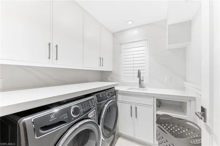 Outdoor living is a major highlight, with a heated pool and spa, cabana, and a wood-burning fireplace for cooking and entertaining. The new 2025 80+/- foot composite boat dock is equipped with both a boat lift, and jet ski lifts, providing direct Gulf access.