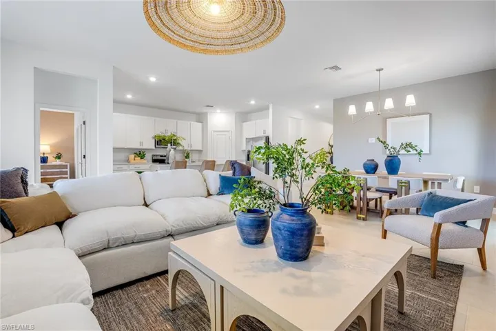 One or more photo(s) has been virtually staged, AI generated or rendered. Hampton Lakes is a collection of new single-family homes for sale at the River Hall masterplan in Alva, FL. This gated community is designed to cater to active lifestyles, featuring an array of amenities including a fitness center, resort-style pool and tennis, pickle ball and bocce ball courts. This new single-story home is perfect for residents who live an active lifestyle. Two secondary bedrooms share a bathroom in the hall at the front of the home, while a third is around the corner with a private bathroom. Down the foyer is the open living area, which includes a kitchen, dining room and family room with a covered patio. The owner’s suite is tucked into the rear corner with an attached bathroom. Prices, dimensions and features may vary and are subject to change. Photos are for illustrative purposes only. Estimated delivery date is May/June 2026.
