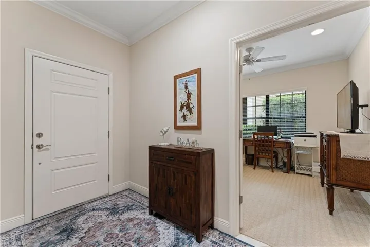 Welcome to this beautifully maintained end-unit villa located in one of Estero’s most convenient gated communities. Built in 2013, this 2-bedroom plus den residence offers a bright, open great-room layout with tile flooring laid on the diagonal, crown molding throughout, and abundant natural light from its eastern exposure.