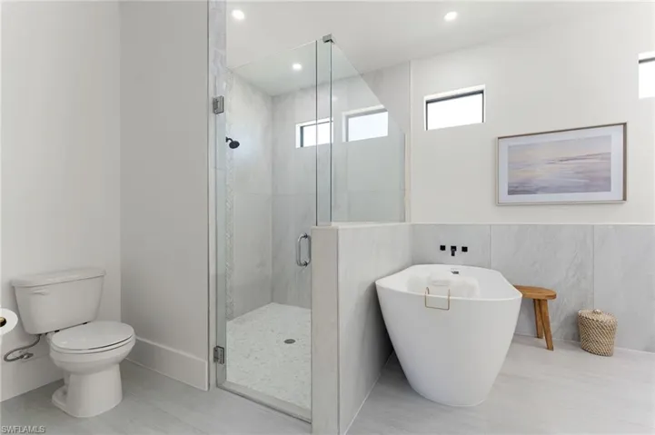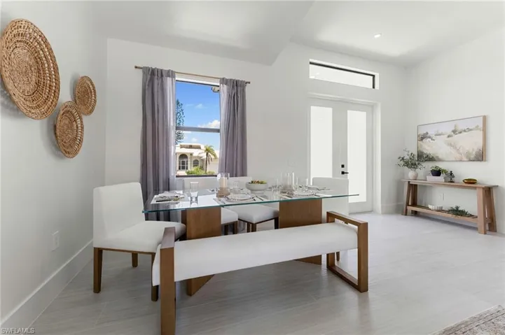 This 2025 new construction 4 bedroom waterfront home offers it all including: perfect Collier County location in Little Hickory Shores on a wide canal, walk or bike to beautiful Barefoot Beach, premier boating out your back door via a new dock and lift with no bridges and quick gulf access, southern exposure, light coastal design inside and out, open floor plan and designer selections throughout, but best of all is PEACE OF MIND with a Tesla roof and battery pack so no generator or propane tanks and lines to worry about and no electric outages, concrete construction to the latest hurricane codes including impact windows and doors and the whole house including the garage and pool were constructed at an elevation above FEMA requirements so flooding is not an issue all while constructed on one level for ease of living. Features include great room, kitchen and dining all open to covered lanai leading to the swimming pool and deck area all overlooking the water and boat dock, volume & vaulted ceilings, large kitchen with island, pantry, quartz countertops custom double stacked Kitchen cabinetry, porcelain wood plank flooring, 8’ doors, smooth drywall finish and designer bath selections. The elevated pool with sundeck includes an oversized covered patio with access to a convenient pool bath. The spacious master suite offers 2 walk in closets with built-ins, oversized frameless shower and floating tub with dual vanities and the 3 guest rooms include an additional en-suite bath. The oversized garage also above flood is finished with epoxy flooring. Little Hickory Shores is centrally located to dining, entertainment, golfing, arenas in Naples and Bonita Springs and is close RSW Airport, the Promenade, Coconut Point, Mercato & Waterside Shops and Old Naples. There is also an option to join the Club at Barefoot Beach which offers casual and fine dining restaurants, pool & beachside food, drinks and chair service, indoor & outdoor bars, tennis courts with pro & a full events calendar. (waitlist with usage during wait period). Note: This property is a perfect full time homestead residence or winter home residence with no worries while away during the summer, a come and go property that earns enough to carry itself when you are not in residence or a full time rental property since no rental restrictions and no HOA fees. Designer turnkey furniture and furnishings package can be purchased for $99,900