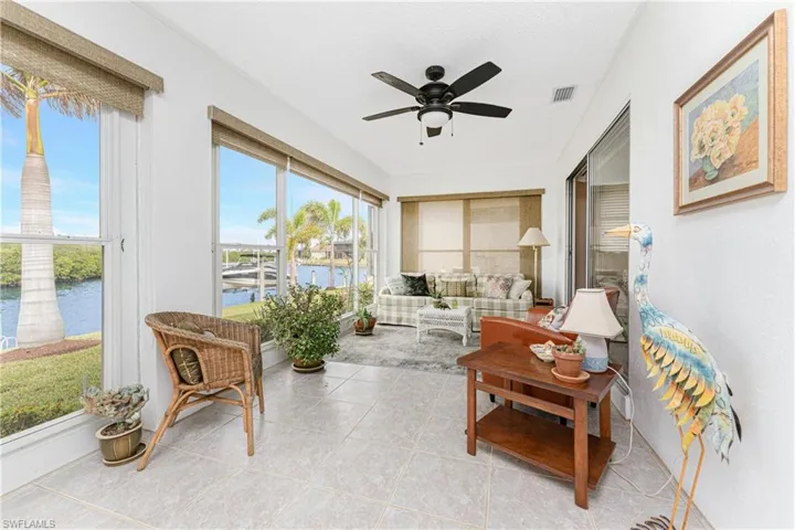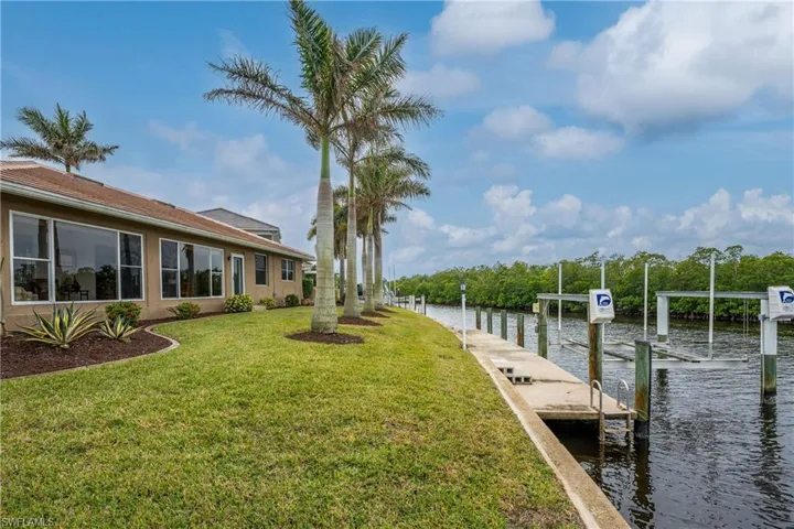LOCATION, LOCATION, LOCATION! This waterfront gem is surrounded by substantial custom built estate homes in a desirable boating community of Burnt Store Isles. Situated across from a pleasing mangrove preserve, this home is just a few minutes by boat from the Alligator Creek entrance, and Charlotte Harbor beyond. This home boasts a NEW ROOF in Jan 2024 and is ready for you to move in and begin living the waterfront lifestyle you’ve always dreamed of. It is the perfect 2nd home and a great alternative to a condo. Sit on your spacious enclosed lanai and take in the beauty and tranquility of this pristine location, with mangroves across the canal painting a serene natural backdrop for your meals and gatherings. Stay entertained without leaving your seat by the daily boat parade passing by with TONS of boat traffic…or simply watch manatees lazily floating by. At the heart of this home, the attractive kitchen has been thoughtfully updated with stone tops atop white shaker style cabinets and drawer storage, tile backsplash, and Cafe series appliances with stainless hood. You are sure to enjoy your breakfast at the inviting dining nook with front row seats overlooking the water. Neutral tile flooring leads you through the main living space and into the master suite, which enjoys access to the enclosed lanai, and space for a seating area. This split floor plan also has a private guest wing, where visitors can start their day with panoramic water views. This oversized SAILBOAT ACCESS lot with a sprawling 95 ft. seawall with 45’ concrete dock and 10k pound boat lift, installed in 2019, will be the starting point for many waterfront adventures. You are sure to enjoy the easy access to Charlotte Harbor and the Gulf of Mexico via Alligator Creek. At the end of the day, sit back with a drink in hand and enjoy the nightly sunset over the mangroves. The A/C was replaced in Aug 2022, water heater in Jan 2024, and the home is being offered with an optional furniture package. Just a short drive from downtown Punta Gorda, you will have access to shopping, dining, and waterfront parks. Don’t miss out on this opportunity to own your piece of waterfront paradise!