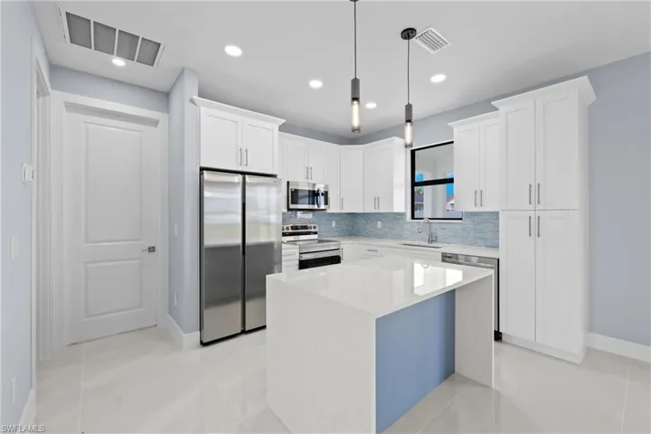 WELCOME TO YOUR HOME IN CAPE CORAL, FL. This property is located in the NE area, NO FLOOD ZONE. It features 3 spacious bedrooms, each with its own walk-in closet, and 2 bathrooms. The kitchen boasts all stainless steel appliances, quartz countertops with a waterfall design, and cabinets with a very modern style. All windows and doors are impact resistant. There is a garage for two cars and a spacious driveway. The house has plenty of natural light and finishes that give it a very elegant appearance. It has been meticulously designed with numerous upgrades. Additionally, it has CITY WATER! DONT MISS THE OPPORTUNITY TO BUY THE HOUSE OF YOUR DREAMS.