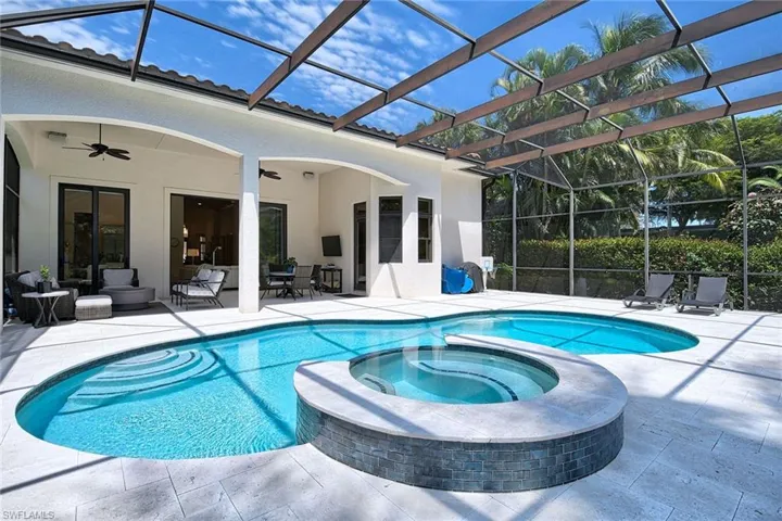 Incredible opportunity to own a fabulous remodeled villa in Mediterra. Four-bedroom, 3.5-bath and three-car garage residence. This updated home is in a park-like private setting with desirable southern exposure. The remodeled gourmet-inspired galley kitchen features white cabinetry, new countertops and upgraded stainless steel appliances with a gas cooktop for the chef. Freshly painted interior, updated lighting and new white oak flooring throughout. Designed for entertaining friends and family, this villa offers an enclosed media room and one of the largest outdoor lanai areas along with a new shell stone deck, new tile pool and spa and screen cage. Architectural and design elements include the wide-center hallway, volume ceilings, an open floor plan, crown moldings and quartz countertops. Other major improvements include a newer roof and air-conditioning units. Enjoy the low-maintenance lifestyle of a villa and experience the many amenities of this award-winning, resort-style community. Mediterra offers two Tom Fazio-designed golf courses, a private beach club, tennis, a new fitness center, bocce, pickleball, fine and casual dining, and a socially active lifestyle.