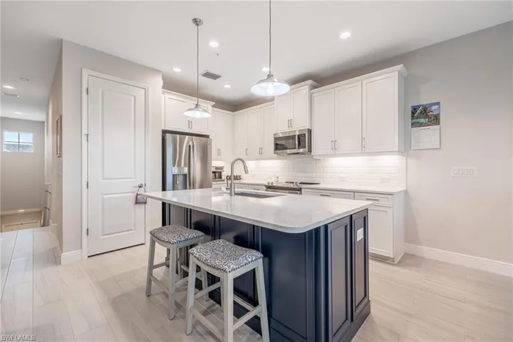 Currently offered as a long term unfurnished rental. This beautifully appointed carriage home blends relaxed coastal charm with modern convenience, offering three generously sized bedrooms and a spacious two-car garage—perfect for comfortable, stylish living. Step inside to a thoughtfully designed interior where the open-concept kitchen takes center stage. Featuring sleek quartz countertops, soft-close cabinetry, and a full suite of stainless steel appliances, it’s an ideal space for both everyday living and entertaining. Unwind on the oversized screened lanai, where tranquil lake views create the perfect backdrop for morning coffee or Naples’ famous sunset skies. This home offers the indoor-outdoor lifestyle Florida is known for. As a resident, you’ll enjoy access to resort-style amenities including a clubhouse, state-of-the-art fitness center, and a resort pool with spa—everything you need to relax and recharge just steps from your door. Located just minutes from the world-class dining, luxury shopping, and white-sand beaches of Downtown Naples, this rental offers both convenience and an elevated lifestyle.
