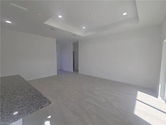 Welcome to your brand new home in Lehigh Acres, FL! This spacious 4-bedroom, 2-bathroom house is ready for you to be the first to call it home. The modern open floor plan features a great room and gourmet kitchen with a large island, perfect for entertaining. The kitchen is equipped with stainless steel appliances, granite counters, and a full appliance package, including a large pantry. The primary bedroom boasts an en-suite with dual vanities, a large tiled shower, and his and hers closets. The house also features a large inside laundry room with washer and dryer hookups, a two-car garage, and a covered rear lanai. There is beautiful tile flooring throughout the home, coffered ceilings in the primary bedroom and great room, and modern lighting and fixtures add a touch of elegance. The house is pet-friendly and comes with impact windows for storm protection. Located close to SR 82, it offers easy access to FT Myers and all amenities in Lehigh Acres. With a large backyard and lots of natural lighting, this house is one of the lowest-priced new constructions in the area.