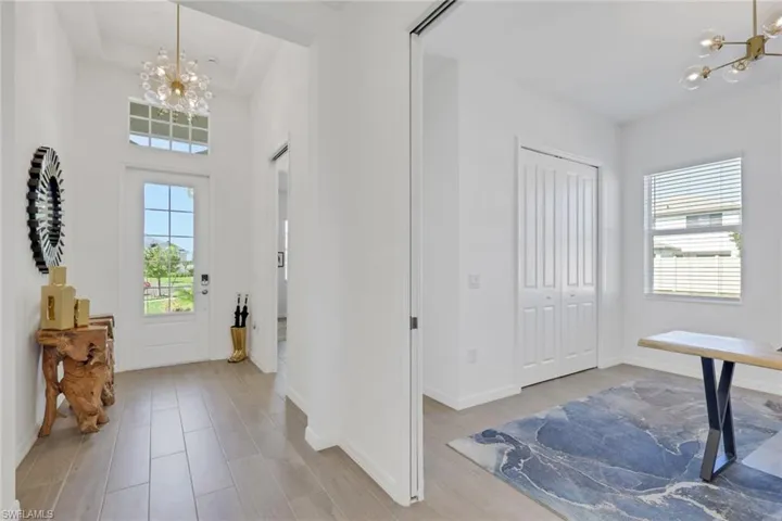 Rare chance to claim this partially furnished Maria model in The National Golf and Country Club at Ave Maria. Barely lived in, this POOL home features 4 bedrooms/3 full bathrooms, tile roof, plank tile throughout, 8 ft interior doors, multiple tray ceilings, and a spacious kitchen. The heart of the home centers around a grand island topped with quartz surfaces, sleek stainless appliances, 42″ cabinetry with matte gold handles, and a convenient walk-in pantry. Designed with a split layout for maximum seclusion, included is a private guest suite featuring its own bathroom. The primary suite offers dual walk-in closets, separate vanities, and a spacious walk-in shower and tub. Relax and unwind in your heated pool/spa, where you’ll savor views of the fairways and lake. Situated on a cul-de-sac! Custom Interior/Exterior Lighting, Furniture Negotiable, 50 Amp EV charger, and Storage Racks in Garage! Residents of The National enjoy an impressive array of facilities: a massive 23,000 sq ft clubhouse, two dining venues, a cutting-edge fitness center, a complete spa service, a resort-style swimming pool, and a dedicated lap pool. The community also features an 18-hole championship course designed by Gordon Lewis, 8 tennis courts, 6 pickleball courts, and two pro shops. Beyond the gates, the vibrant Ave Maria town delivers endless conveniences: beautiful parks, scenic walking paths, diverse dining options, retail shops, a Publix supermarket, and much more! This is truly resort-style living at its finest, inquire for more details!