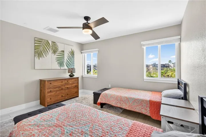Coastal living with strength and style at Sunset South. Welcome to 1341 Middle Gulf Drive #12C on Sanibel Island. This beautifully remodeled top-floor corner condo is located within the exclusive Sunset South community, a 56-residence beachfront enclave offering a beachside pool, community clubhouse, and a private beach walk to Sanibel’s shell-lined shores. A rare feature, building 12 is one of only five buildings with a private elevator, providing direct access from the garage to the residence. Additional highlights include an under-building garage with a hurricane-rated door and a large private storage unit. Inside, the open living and dining area flows to an oversized screened lanai with Gulf views. The updated kitchen features navy cabinetry, ample quartz countertop space with a breakfast bar, stainless steel appliances, and generous storage. Plank tile flooring runs throughout the home, and the condo includes in-residence laundry with a ventless washer-dryer combo. The primary suite enjoys a partial western Gulf view and features a walk-in closet and a remodeled bath with dual sink vanity and a tiled walk-in shower. The guest bath includes a subway-tiled tub and shower. The residence is being offered furnished. Sunset South has completed a multi-million-dollar renovation following Hurricane Ian, including new 50-year metal roofs, hurricane-rated windows and doors along with electric lanai shutters, upgraded garages and storage areas, improved drainage and landscaping, and modernized building systems. Elevators are also being upgraded with new hydraulics. This is a rare opportunity to own a fully updated beachfront condo that blends quality construction, resilience, and the relaxed Sanibel lifestyle.