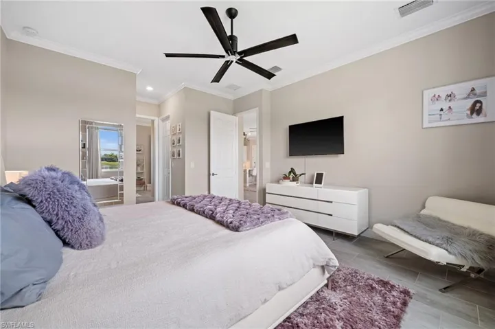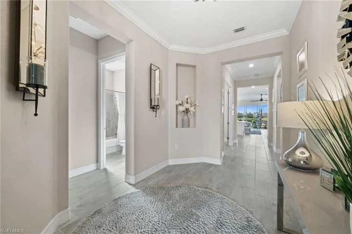 Crown molding and plantation shutters add timeless character throughout, while the open layout draws your eyes straight to the beautiful lake view that will make every cup of coffee and every evening meal feel special.