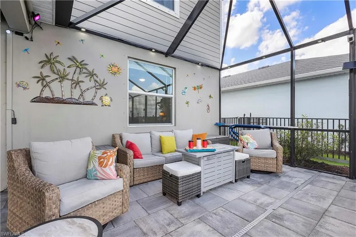 Smart features such as Govee exterior lighting, a WiFi-enabled irrigation system, and a whole-house surge protector provide peace of mind. Plus, enjoy hurricane sliders on the patio and impact windows upstairs for added security.