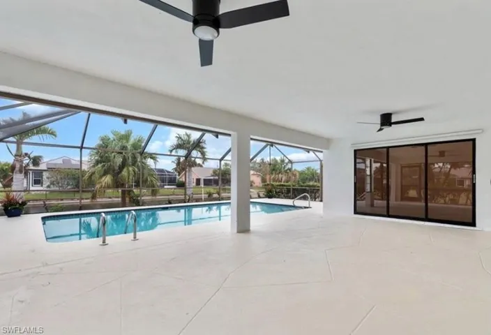 Welcome to your Florida retreat. This beautifully maintained 3-bedroom, 2-bath pool home is ideally situated on an intersecting freshwater canal, offering wide water views and a peaceful setting in established Southeast Cape Coral.Enjoy seamless indoor-outdoor living with a spacious covered lanai overlooking the sparkling pool.