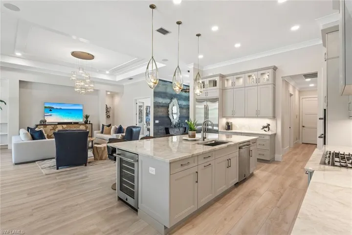 Experience elevated coastal living in this newly built Stock Custom Home in the prestigious Isles of Collier Preserve. One of the closest homes to downtown Naples in the entire community, this home is just a short 10-minute drive to world-class dining, shopping, and the Gulf beaches. This elegant residence showcases an open-concept great room design, refined finishes throughout, and a gourmet kitchen featuring a gas cooktop, large island, walk-in pantry, wall oven and wine cooler, ideal for entertaining and everyday living. Designed for seamless indoor-outdoor living, enjoy nearly 1,000 square feet of covered lanai space. Thoughtfully oriented to offer the best of both worlds, the lanai features beautifully sun-drenched areas ideal for soaking up the Florida sunshine alongside comfortable, shaded retreats for relaxing in the breeze. The lanai also features a full outdoor kitchen and gas fireplace and overlooks a private preserve backdrop with no rear neighbors, offering a rare sense of seclusion and tranquility you’ll find hard to match. The resort-style heated saltwater pool and spa, hurricane-impact windows, and over $500,000 in builder upgrades elevated the home’s sophistication and comfort. An additional $300,000 in owner enhancements further refine the property, including a three-car garage buildout with Tesla charger, custom wood shutters and upgraded closets. Professionally designed and furnished by Robb & Stucky, this home captures the essence of refined Naples coastal luxury. Ranked among the third closest homes to downtown in the entire Isles of Collier Preserve subdivision, residents also enjoy access to exceptional amenities including The Isles Club, fitness center, resort and lap pools, tennis, pickleball, kayaking and dining at The Overlook Bar & Grill. This desired location puts everything Naples has to offer just minutes from your front door.