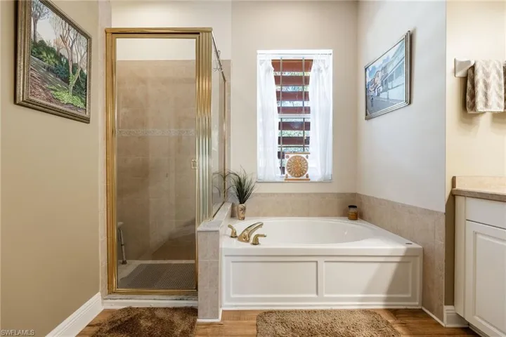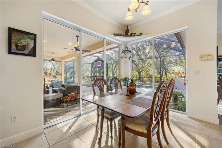 A long pavered driveway provides ample parking and leads to the home’s welcoming entrance. Inside, you will be greeted by abundant natural light, a formal dining area, and a sitting room ideal for entertaining or relaxing. The split floor plan offers ultimate privacy, with the primary suite separated from the guest bedrooms. The primary retreat features sliding glass doors to the screened pool deck, dual sinks, a soaking tub, a spacious walk in shower, and a large walk in closet.