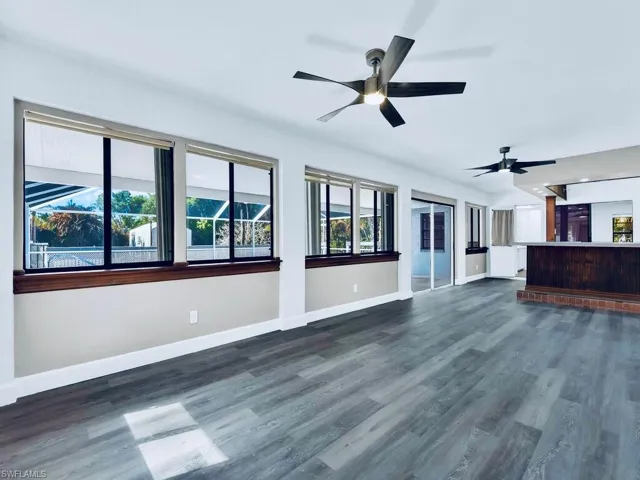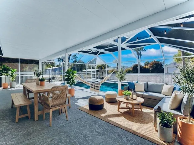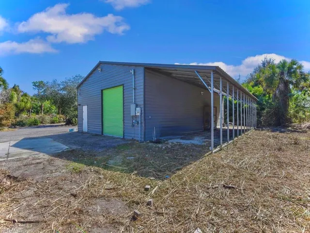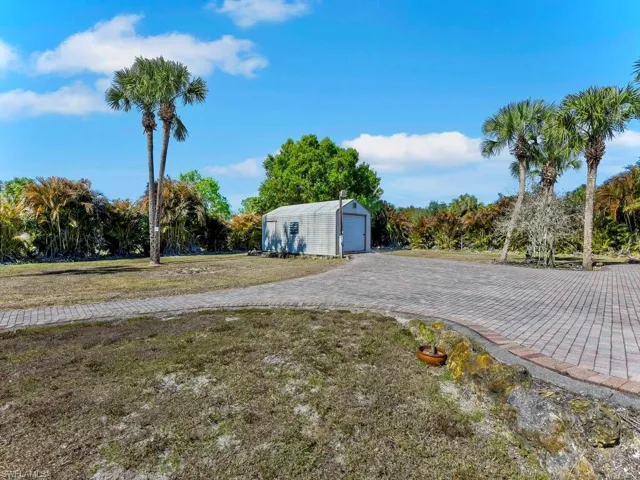 Welcome to this MASSIVE over 2,600 sq ft 4/2.5 + Den POOL 1.5 ACRES TRIPLE LOT home nestled away on a quiet dead end with a 1,500 detached WORKSHOP featuring separate utilities, bathroom, Office, 3 large Roll up doors, and big covered carport! It has been freshly painted and highlights SOLID surface countertops, tile & luxury vinyl flooring throughout, a rewarding great room with cathedral ceilings, newer fixtures, HIGH efficiency washer & dryer, spacious WALK-IN closets, and an awarding recreational room with built-in bar + sink great for entertaining. This Peaceful property is NOT in a flood zone & nicely landscaped with mature oaks & highlights an enormous extended patio with pavers & walkways, multiple detached storage sheds, fenced in kennel area, two horseshoe pits, an extended driveway, HIGH SPEED internet, and a screened & tiled front porch. Excellent work from home opportunity with heavy equipment storage, plenty of room for hosting events or parties, just minutes away to all major amenities, Williams park, and a quick commute to Fort Myers. Schedule your showing today!
